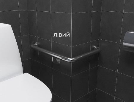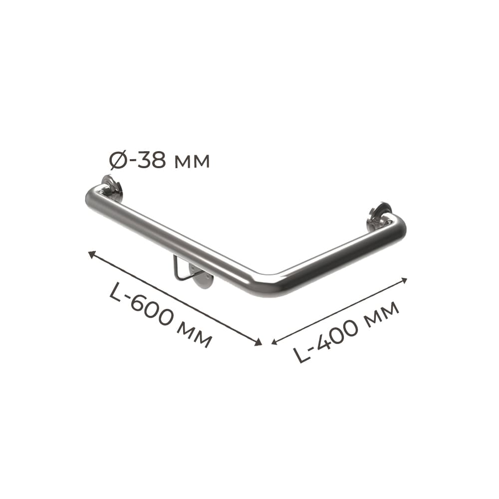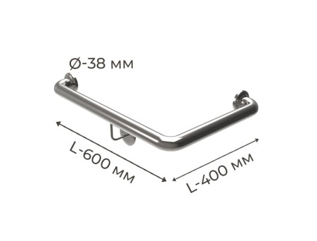 Опис Поручень для людей з інвалідністю (МГН) настінний INVO для зовнішнього кута правий та лівий, розмір 600х400 мм, D труби - 38 мм