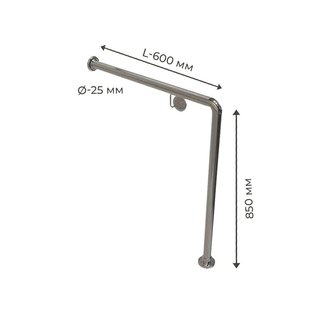Характеристики - Поручень для людей з інвалідністю (МГН) підлоговий INVO Г-подібний з кріпленням у стіну правий і лівий, розмір 600х850 мм, D труби - 25 мм