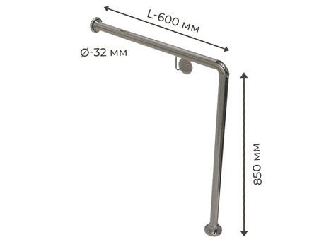 Опис Поручень для людей з інвалідністю (МГН) підлоговий INVO Г-подібний з кріпленням у стіну правий і лівий, розмір 600х850 мм, D труби - 32 мм