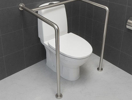 Опис Поручень для людей з інвалідністю (МГН) підлогово-настінний подвійний INVO унітазу, розмір 750х850 мм, D труби - 38 мм