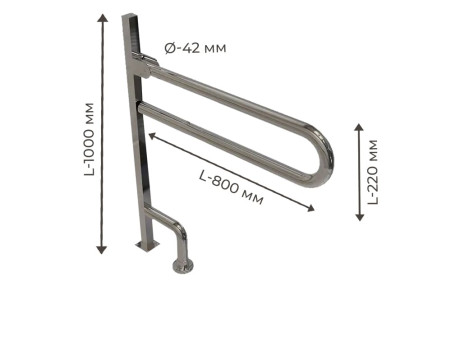 Опис Поручень для людей з інвалідністю (МГН) подвійний INVO відкидний з кріпленням у підлогу на нозі, розмір 800х220 мм, D труби - 42 мм