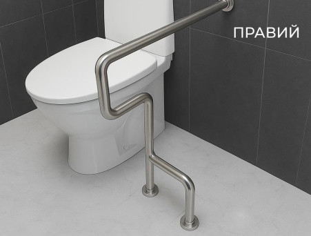 Поручень для людей з інвалідністю (МГН) правий і лівий підлоговий INVO для туалету з 2 опорами, розмір 750х850 мм, D труби 42 мм