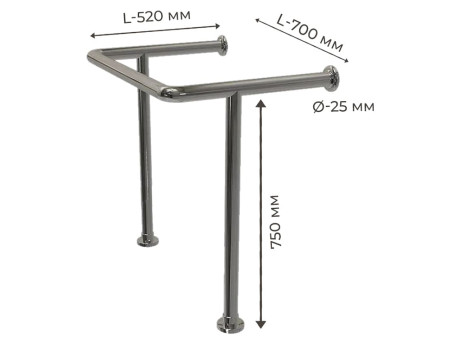 Опис Поручень для людей з інвалідністю (МГН) у туалет для раковини підлогово-настінний INVO дві опори, розмір 700х750 мм, D труби - 25 мм