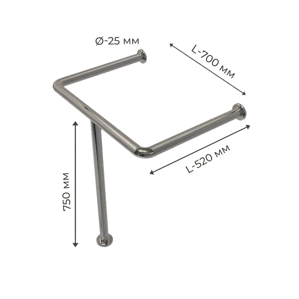 Поручень для людей с инвалидностью (МГН) для раковины напольно-настенный INVO из нержавеющей стали, размер 700х750 мм, D трубы – 25 мм