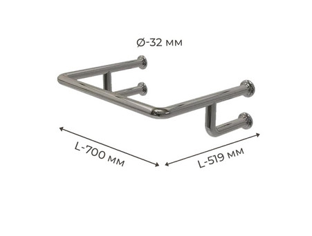 Описание Поручень для людей с инвалидностью (МГН) на стену для раковины INVO верхний из нержавеющей стали, размер 700х519 мм, D трубы – 32 мм.