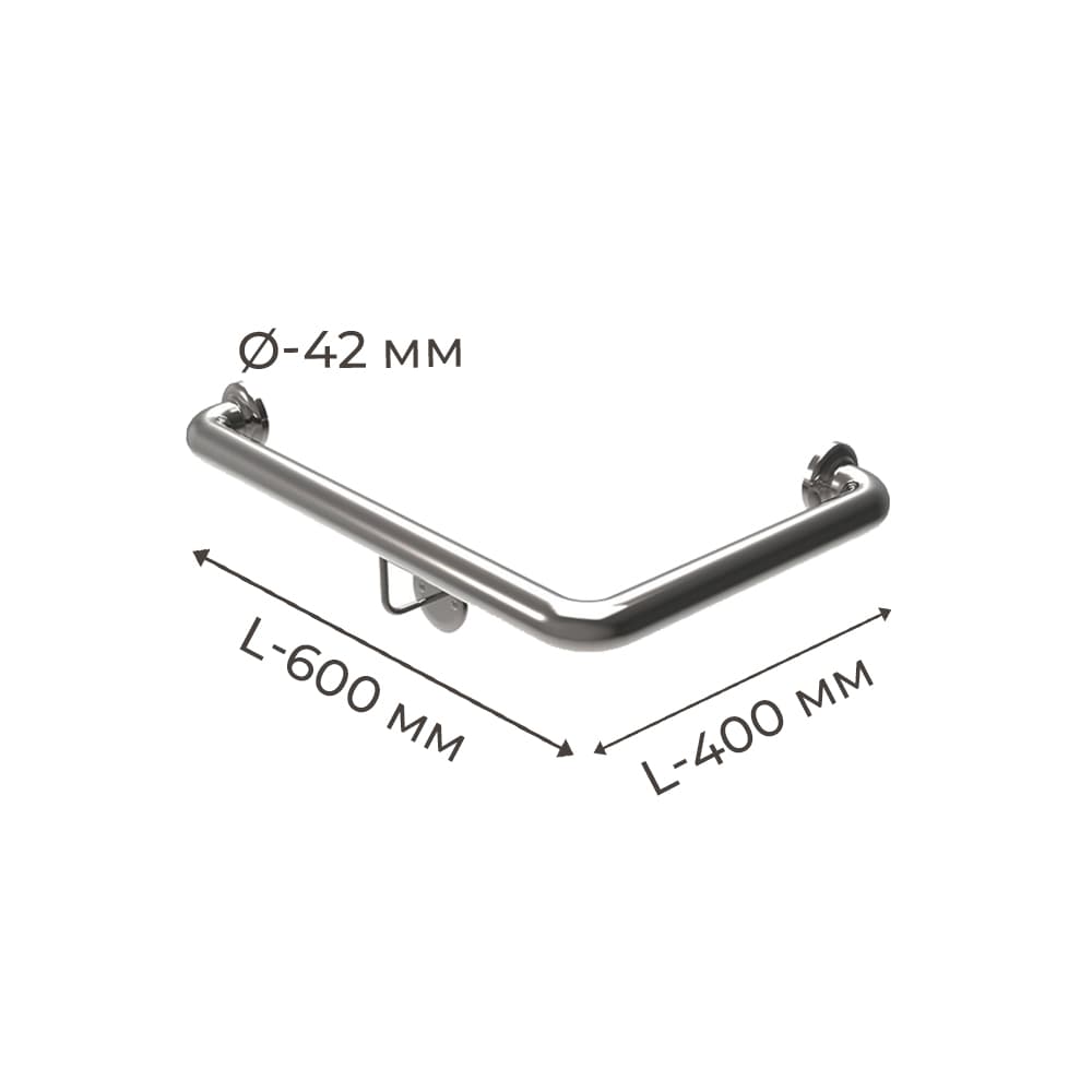 Описание Поручень для людей с инвалидностью (МГН) настенный INVO для наружного угла правый и левый, размер 600х400 мм, D трубы – 42 мм.