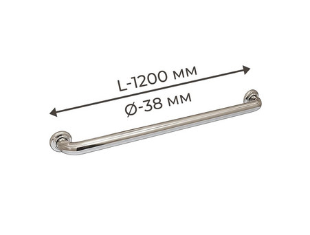 Описание Поручень для людей с инвалидностью (МГН) прямой настенный INVO из нержавеющей стали, L-1200 мм, D трубы - 38 мм