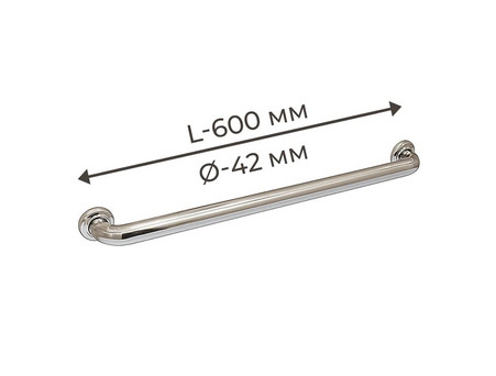Описание Поручень для людей с инвалидностью (МГН) прямой настенный INVO из нержавеющей стали, L-600 мм, D трубы - 42 мм