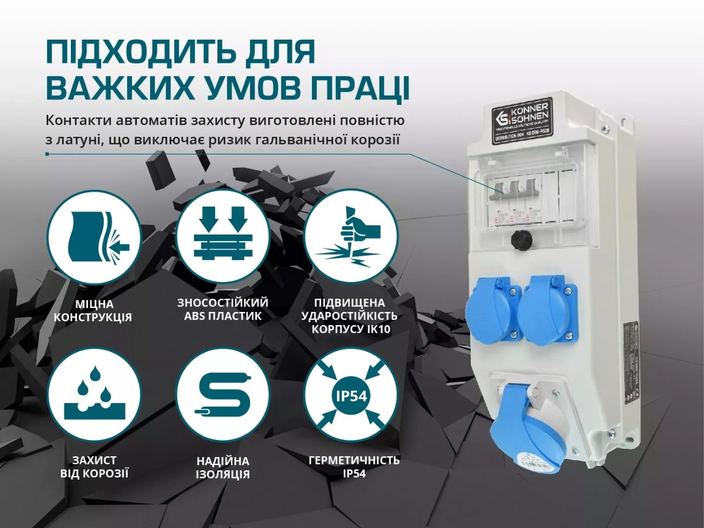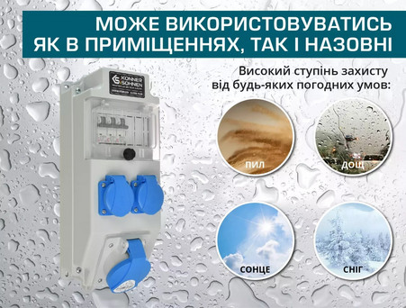 Предназначен для распределения электрического тока между несколькими потребителями, допускается использование как снаружи, так и внутри зданий.