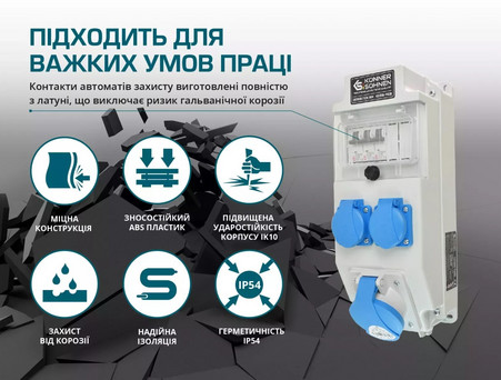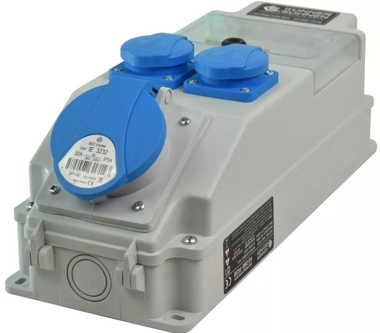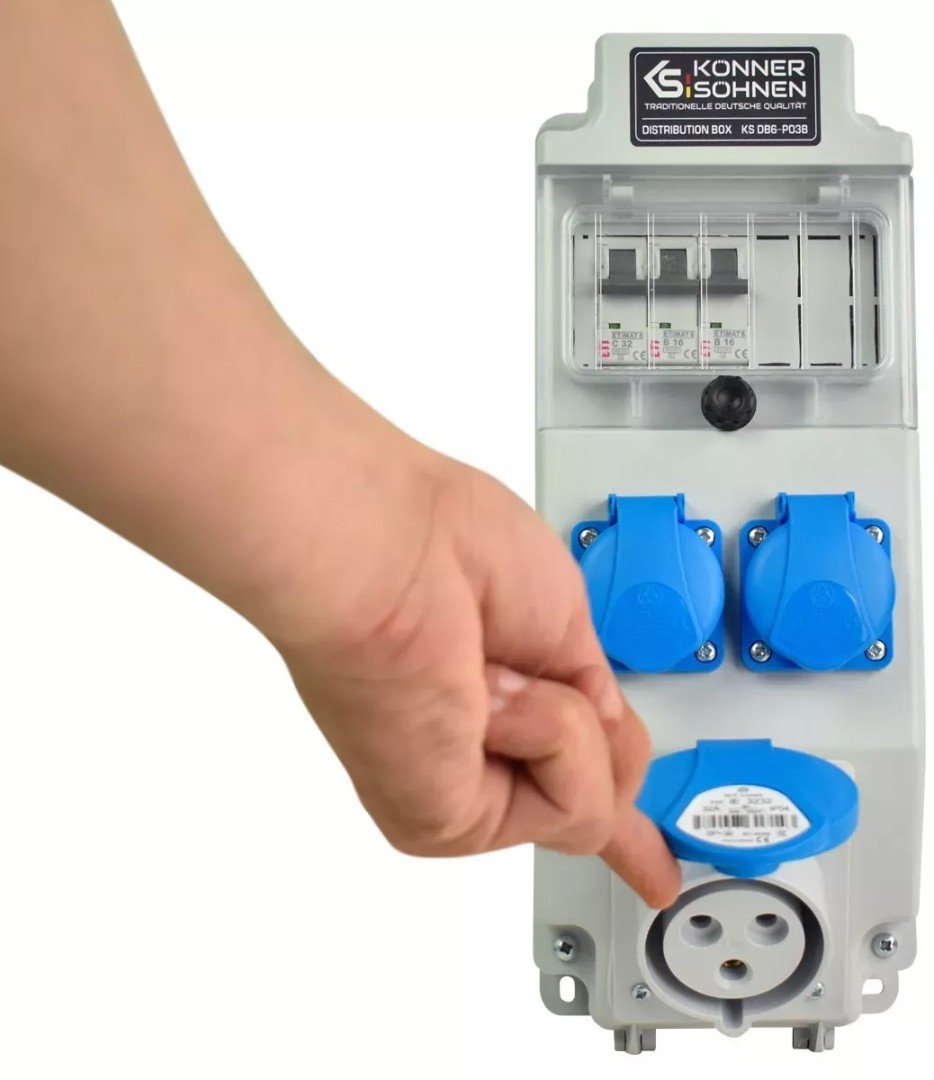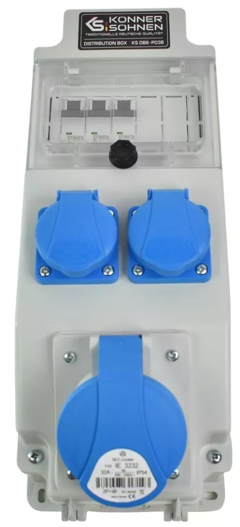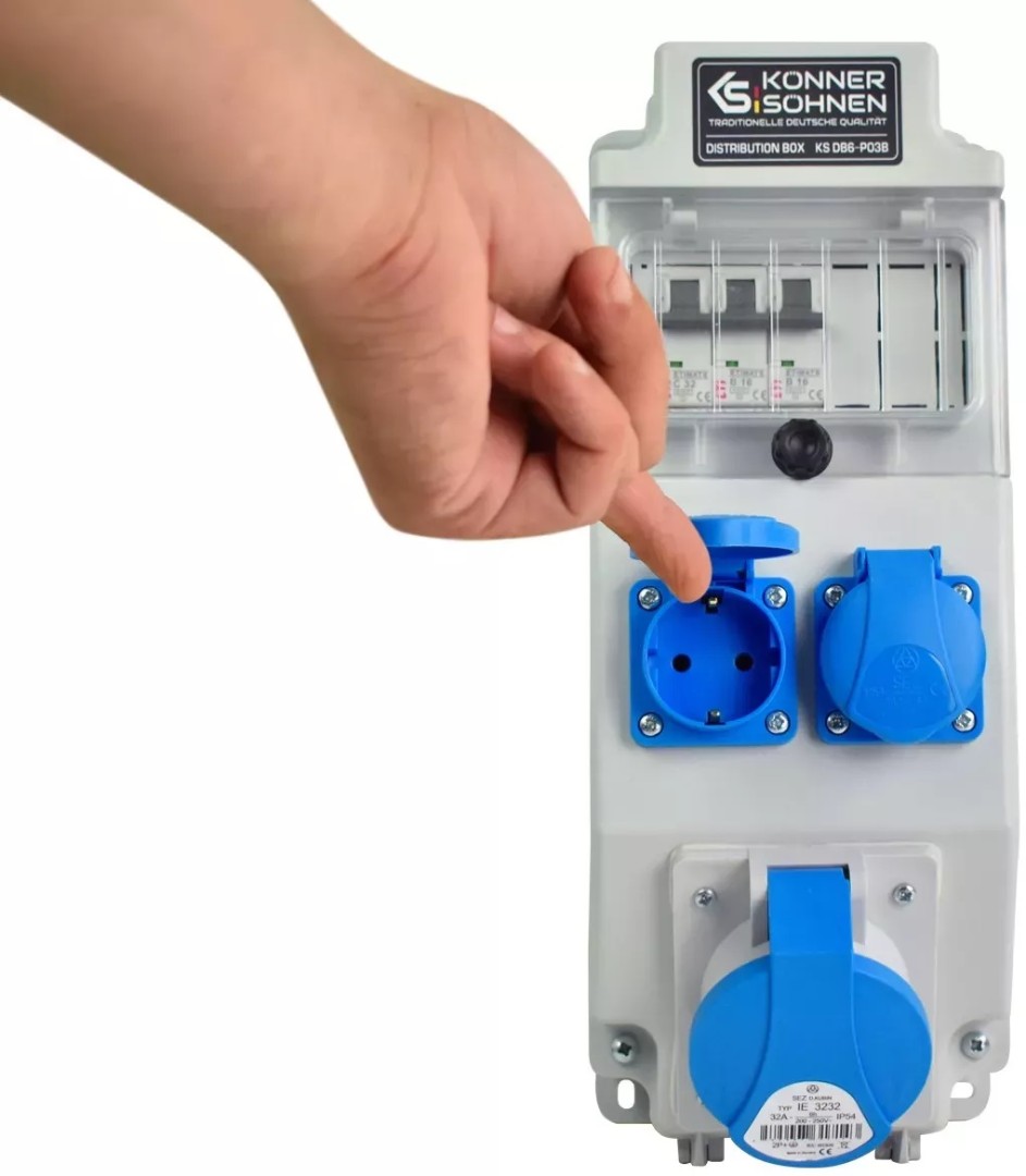 - Розетки 2 x Schuko 230 V, 1 x CEE 230 V 32 A