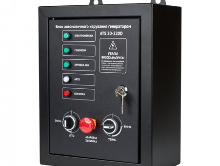 Блок керуючої автоматики Hyundai ATS-20-220D Aпризначений для перемикання живлення зі стандартною електромережою на генератор. Блок автоматично переходить на генераторное живлення при зупинці подачі електрики. Також можливий варіант переходу назад в разі відновлення живлення в мережі.