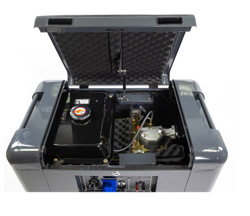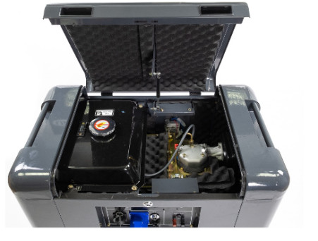 Це одноциліндровий 4-тактний агрегат із повітряним охолодженням. Об'єм паливного бака становить 15 літрів, а середня витрата бензину – 1.65 л/год. Установка може працювати без дозаправки від 8 до 12 години. Двигун також оснащений електростартом для зручного запуску.