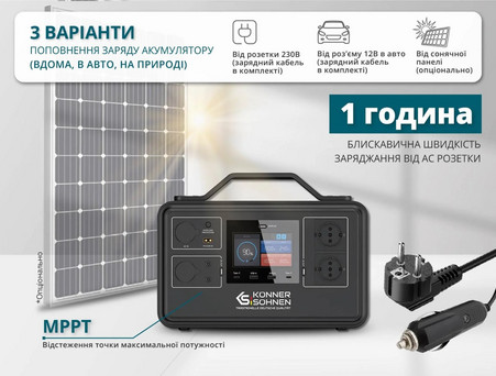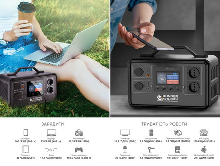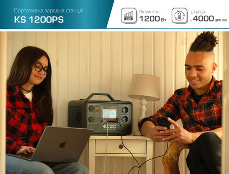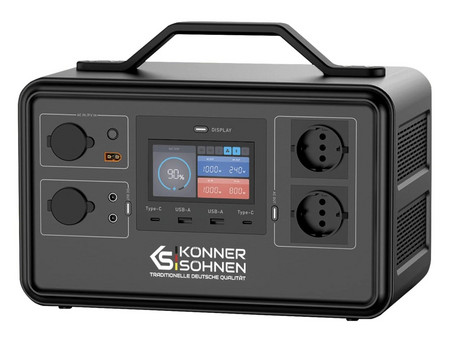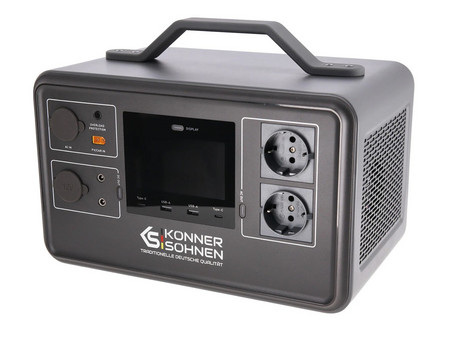 Мобільна портативна електростанція KS 1200PS німецької торгової марки Könner & Söhnen виготовляється з використанням високоякісних LifePO4 літій-залізо-фосфатних акумуляторів високої ємності, які мають більш високу енергетичну щільність в порівняні з Li-ion, вони можуть зберігати більше енергії в компактному форматі та мають великий життєвий цикл – 4000 циклів заряд-розряд. Вона стане надійним помічником для зарядки пристроїв в дорозі або в разі збоїв електропостачання. Її потужності буде достатньо для роботи такої техніки як смартфон, цифрова камера, планшет, дрон, міні-холодильник, насос для накачування, вентилятор. Вона працює тихо, тому дозволить живити електричні пристрої та насолоджуватись часом без будь-якого заважаючого шуму.