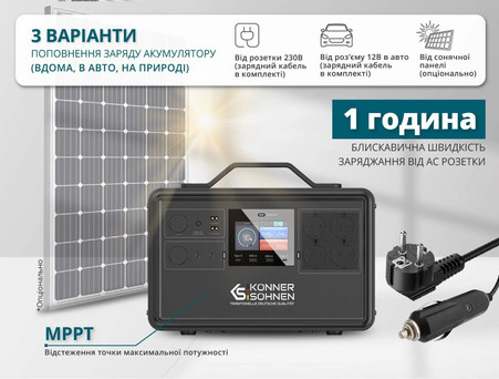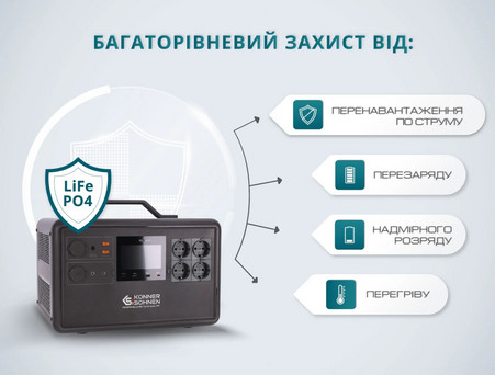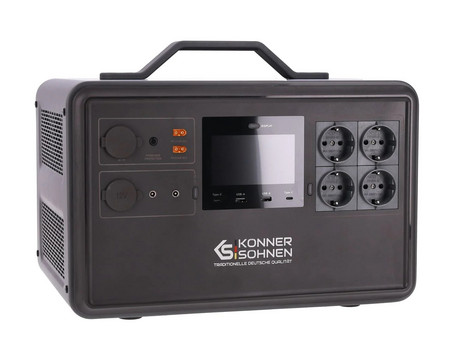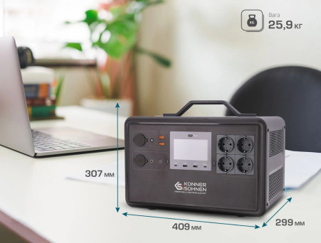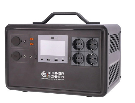 Мобільна портативна електростанція KS 2400PS німецької торгової марки Könner & Söhnen виготовляється з використанням високоякісних LifePO4 літій-залізо-фосфатних акумуляторів високої ємності, які мають більш високу енергетичну щільність в порівняні з Li-ion, вони можуть зберігати більше енергії в компактному форматі та мають великий життєвий цикл – 4000 циклів заряд-розряд. Вона стане надійним помічником для зарядки пристроїв в дорозі або в разі збоїв електропостачання. Її потужності буде достатньо для роботи такої техніки як смартфон, цифрова камера, планшет, дрон, міні-холодильник, насос для накачування, вентилятор. Вона працює тихо, тому дозволить живити електричні пристрої та насолоджуватись часом без будь-якого заважаючого шуму.