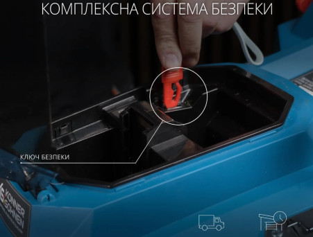 Акумулятора газонокосарка оснащена комплексною системою безпеки, включаючи ключ активації, який необхідно вставити для ввімкнення інструменту. Якщо ключ вийняти, газонокосарка автоматично вимикається, що захищає від випадкового ввімкнення та гарантує безпеку під час зберігання та транспортування. - НАДІЙНИЙ БЕЗЩІТКОВИЙ ДВИГУН