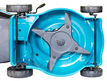 4-лопатевий ніж. Ніж виконаний з високоміцної сталі і має яскраво виражені закрилки для створення потужного вихрового потоку, що дозволяє збирати більше скошеної трави і доводити наповнюваність травозбірника до 100%.