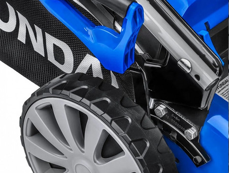 Об'ємний травозбірний контейнер зменшує періодичність скидання зрізаної зелені, скорочує час простою у процесі косіння. Нижня частина кошика із синтетичного полотна не забивається рослинними рештками, забезпечує ефективне спресування для максимального заповнення. Верх із міцного пластику служить для швидкого зняття та комфортного спустошення відходів.