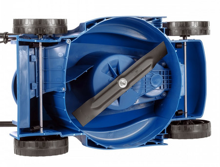 2-лопатевий ніж. Ніж виконаний з високоміцної сталі і має яскраво виражені закрилки для створення потужного вихрового потоку, що дозволяє збирати більше скошеної трави і доводити наповнюваність травозбірника до 100%.