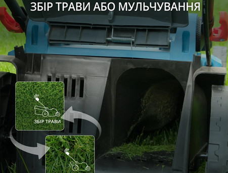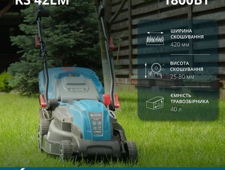 Модель косарки KS 42LM має функцію мульчування, що є особливо корисною для підживлення газону та покращення його стану. Ширина захвату косарки сягає 42 см, що забезпечує ефективне скошування та мульчування навіть при великій площі газону.