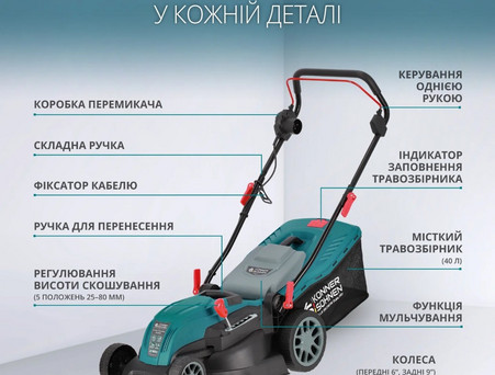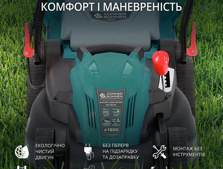 Електричні газонокосарки Könner & Söhnen® мають просту конструкцію, завдяки чому підготовка до роботи, обслуговування чи зберігання здійснюється швидко, легко та без застосування додаткового інструменту.