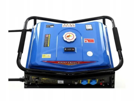 Портативний однофазний генератор від Kraft&Dele призначений для генерації змінного струму 220-230 В за допомогою 4-тактного двигуна внутрішнього згоряння OHV потужністю 7HP і максимальною потужністю генератора 5000W.