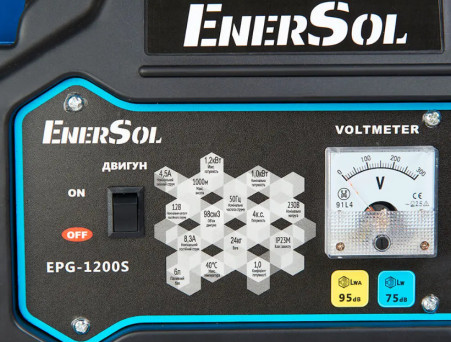 EnerSol EPG-1200S - однофазний генератор з ручним запуском. Він оснащений двигуном Enersol ES-98G з 1 циліндром та робочим об'ємом 98 см³, потужністю 2,98 кВт при 3000 об/хв. Напруга генератора 230В, частота 50Гц, номінальна потужність генератора 1кВт та максимальна потужність генератора 1,2кВт.