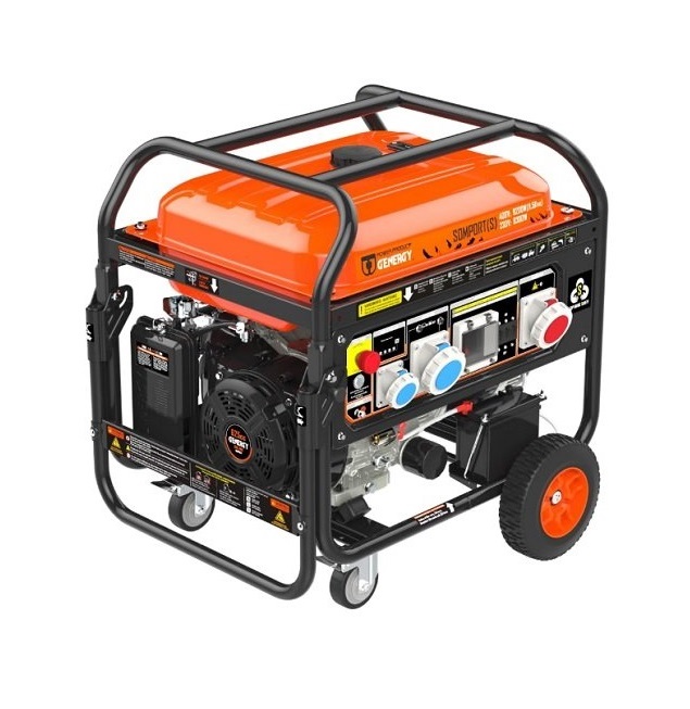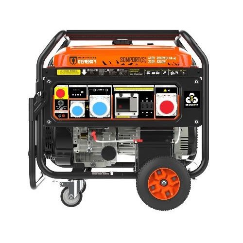 Генератор бензиновий GENERGY SOMPORT 8,3 кВт/9,2 кВт – однофазний та трифазний генератор 230В/400В преміум класу з максимальним захистом від ураження струмом навіть при експлуатації в умовах підвищеної вологості. Підходить для постачання електроенергії до будинків, офісів, будівельних майданчиків, майстерень, кемпінгів і т.д. Здатний забезпечувати роботу електроприладів із сумарною потужністю до 9 кВт (номінальна потужність, напруга 400 В) або до 8 кВт (номінальна потужність, напруга 230 В). Максимальна потужність для даної моделі: 9,2 кВт (400 В) та 8,3 кВт (230 В).