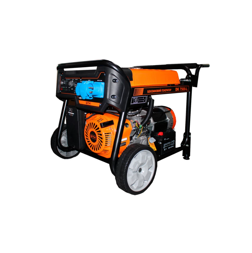 GTM DK7500-L – бензиновий електрогенератор для забезпечення живлення обладнання у разі відсутності електроенергії. Оснащений 4-х тактним двигуном DK192F, який відрізняється економічністю, низьким рівнем викидів та шуму. Максимальна потужність на виході генератора складає 7,5 кВт. Ідеальний варіант для використання у побутових умовах, на дачі або у невеликих магазинах. Під час роботи повного бака палива об'ємом 25 л вистачить до 7:00 при 100% навантаженні. Вбудований АВР дозволяє налаштувати автоматичне увімкнення генератора при відключенні мережі.