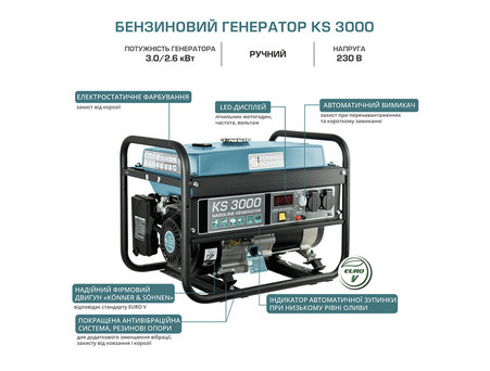 Опис Генератор бензиновий Könner&Söhnen KS 3000 2.6кВт/3.0 кВт ручн.старт