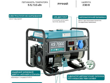 Опис Генератор бензиновий Könner&Söhnen KS 7000 5.0кВт/5.5кВт ручн.старт