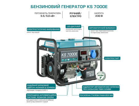 Генератор бензиновий Könner&Söhnen KS 7000E 5.0кВт/5.5кВт ел. старт