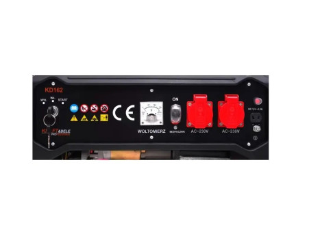 Переносна однофазна генераторна установка з позначенням KD162 фірми Kraft&Dele призначена для вироблення змінного струму напругою 220В-230В з використанням японського 4-тактного двигуна внутрішнього згоряння OHV номінальною потужністю 4,8 кВт та максимальною потужністю 5 кВт.