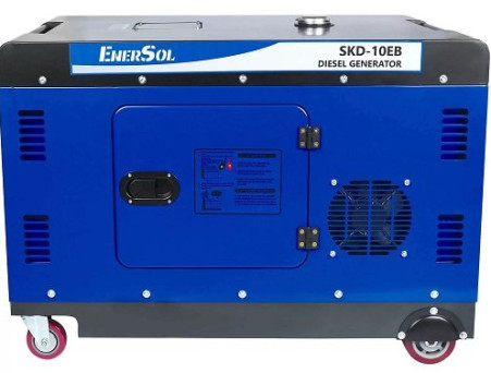 Генератор дизельний EnerSol SKDS-10EB – однофазна електростанція для забезпечення електроенергією побутових приладів, будівельного обладнання тощо сумарною потужністю до 9 кВт (номінальна потужність). Максимальна потужність цього дизельного генератора – 10 кВт.