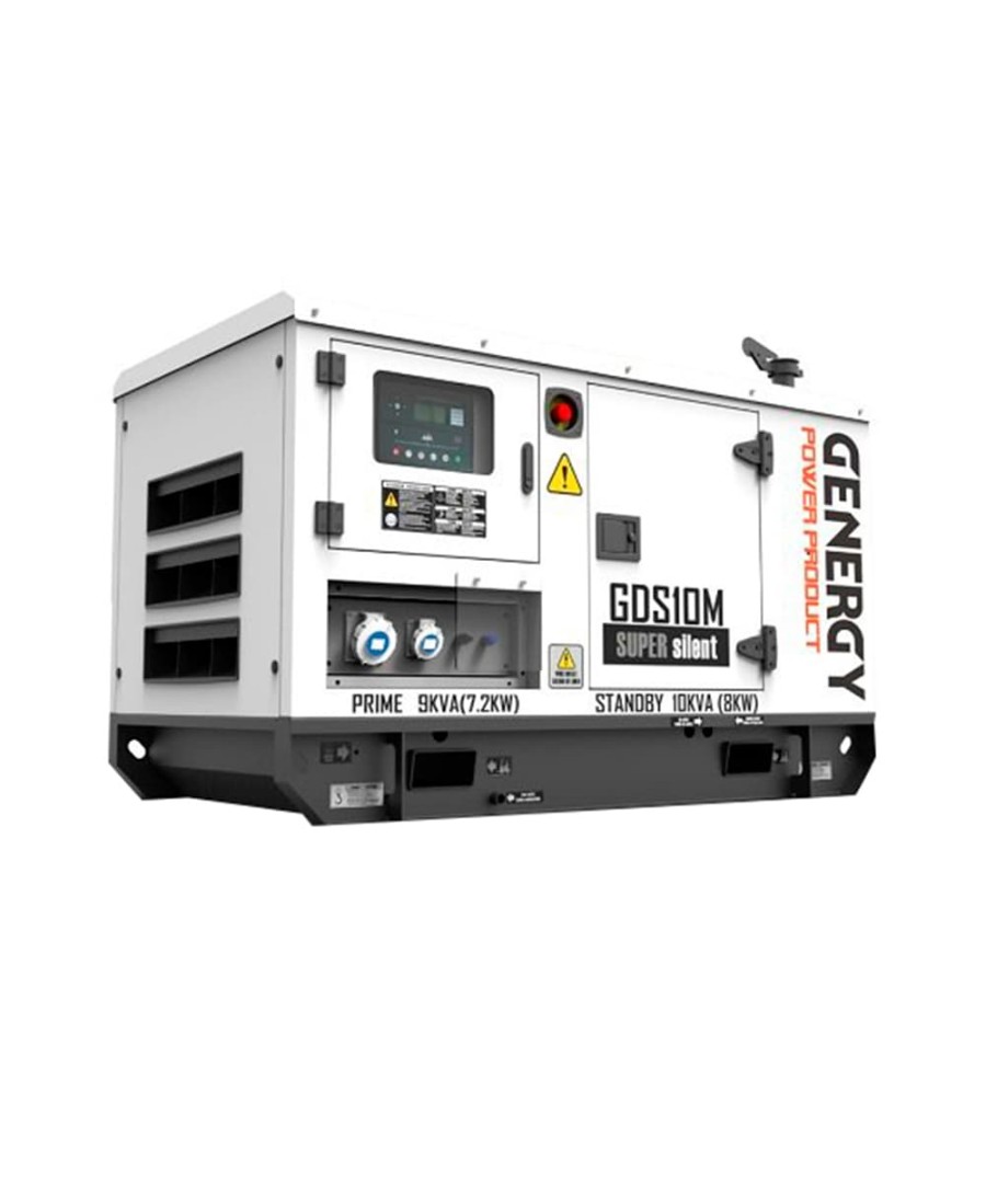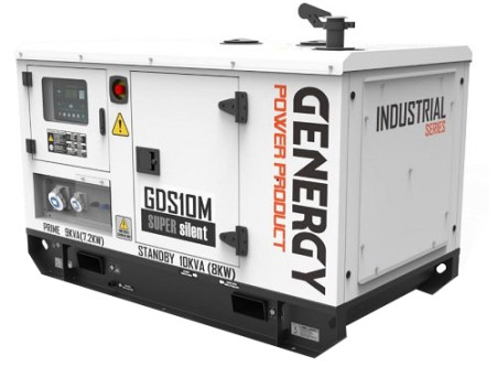Генератор дизельний GENERGY GDS10M 8 кВт – однофазна 230 В електростанція для підключення потужних електроприладів, будівельного обладнання. Придатна для використання у якості основного та резервного джерела електроживлення (є можливість встановлення автоматичного введення резерву АВР).