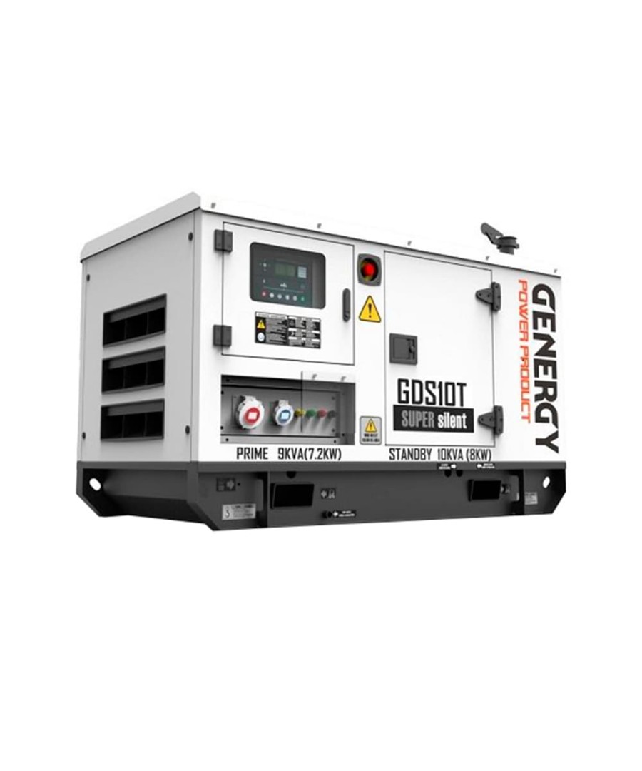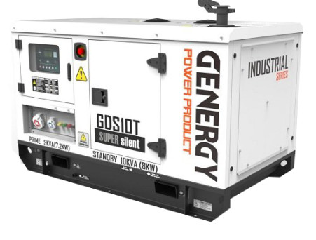 Генератор дизельний GENERGY GDS10T 8 кВт – трифазна 400 В електростанція для підключення потужних електроприладів, будівельного обладнання. Придатна для використання у якості основного та резервного джерела електроживлення (є можливість встановлення автоматичного введення резерву АВР).
