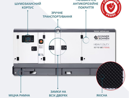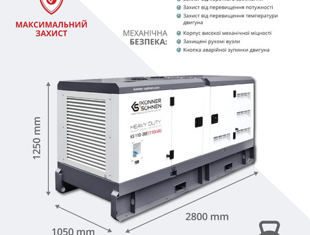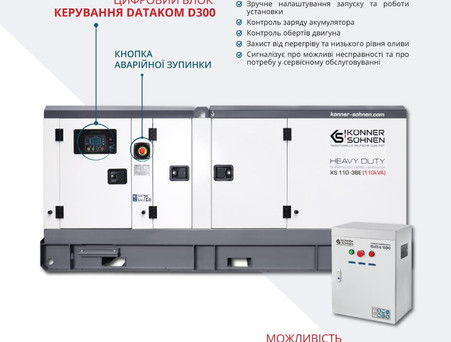 Все це гарантує тривалий термін служби та безперебійну роботу станцій. Навіть в найскладніших умовах електростанції Könner & Söhnen працюватимуть стабільно та надійно, забезпечуючи безперебійне електропостачання, охоплюють широкий діапазон потужностей, що дозволяє підібрати оптимальне рішення для об’єктів різного масштабу та енергоспоживання і є найбільш доцільним рішенням для промисловості, сільського господарства, будівельного сектору, об’єктів охорони здоров’я, а також цивільної і критичної інфраструктури.