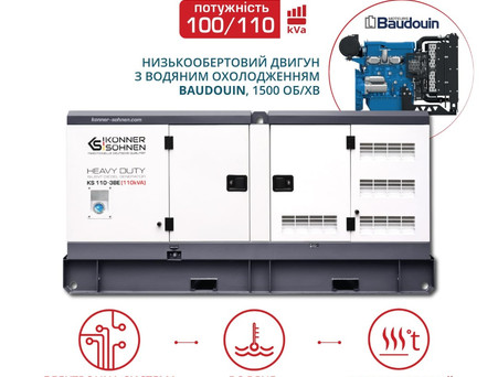 Дизельні 4-х циліндрові електростанції серії HEAVY DUTY німецької торгової марки Könner & Söhnen створені на базі надійних двигунів французького бренду Baudouin з водяним охолодженням.