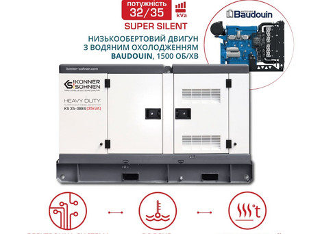 Дизельні 4-х циліндрові електростанції серії HEAVY DUTY німецької торгової марки Könner & Söhnen створені на базі надійних двигунів французького бренду Baudouin з водяним охолодженням.