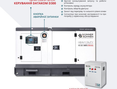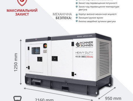 Все це гарантує тривалий термін служби та безперебійну роботу станцій. Навіть в найскладніших умовах електростанції Könner & Söhnen працюватимуть стабільно та надійно, забезпечуючи безперебійне електропостачання, охоплюють широкий діапазон потужностей, що дозволяє підібрати оптимальне рішення для об’єктів різного масштабу та енергоспоживання і є найбільш доцільним рішенням для промисловості, сільського господарства, будівельного сектору, об’єктів охорони здоров’я, а також цивільної і критичної інфраструктури.