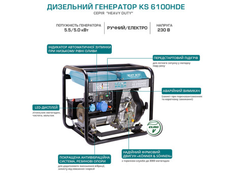Характеристики - Генератор дизельний Könner&Söhnen KS 6100HDE