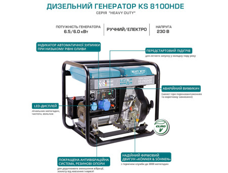 Характеристики - Генератор дизельний Könner&Söhnen KS 8100HDE