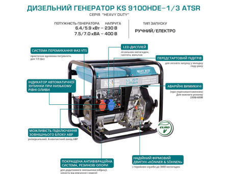 Характеристики - Генератор дизельний Könner&Söhnen KS 9100HDE-1/3 ATSR