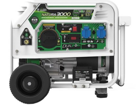 Генератор ГАЗ/бензиновий GENERGY NATURA 3000 2.7/3.0 кВт з електрозапуском – однофазна 230 В газово-бензинова електростанція для забезпечення електроенергією побутових електроприладів, будівельного інструменту тощо. Модель може використовуватися у якості основного або резервного джерела живлення. Максимальна потужність генератора – 3 кВт (при використанні палива – бензин) та 2,6 кВт (при використанні палива – пропан). Номінальна потужність (максимально допустима потужність для тривалих навантажень) – 2,7 кВт (бензин) та 2,3 кВт (пропан).