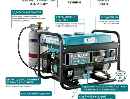 Опис Генератор ГАЗ/бензиновий Könner&Söhnen KS 3000 G 2.6кВт/3.0 кВт ручн.старт