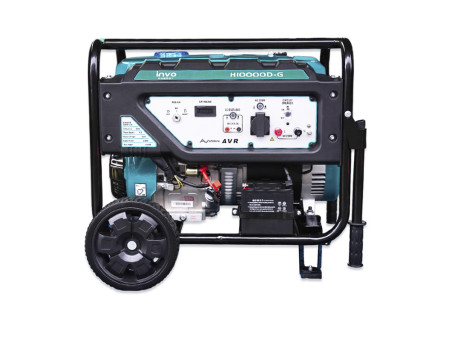 INVO H10000D-G виготовлений з високоякісних матеріалів. Мідна обмотка альтернатора гарантує довговічність і надійність роботи. Вага генератора становить 97 кг, що забезпечує його стабільність під час роботи. Комплект коліс та ручок допоможе легко переміщувати генератор.
