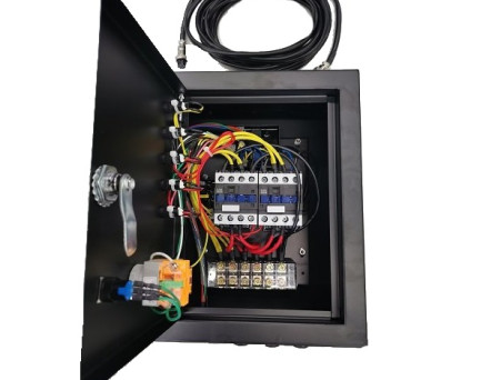 - На панелі управління знаходяться розетки 2х16А 230 В (IP44), 1х32А 230 В (IP44) та розетка постійного струму 1х12 В для зарядки акумуляторів.