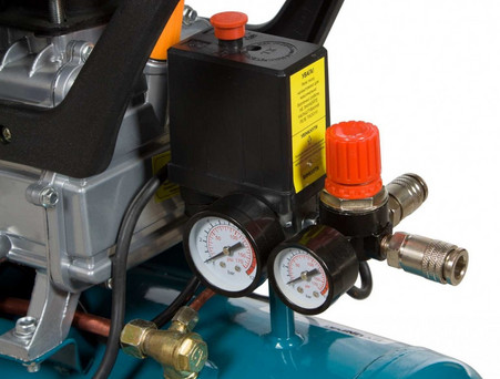 - В ресивері встановлений запобіжний клапан високого тиску та дренажний клапан зливу конденсату