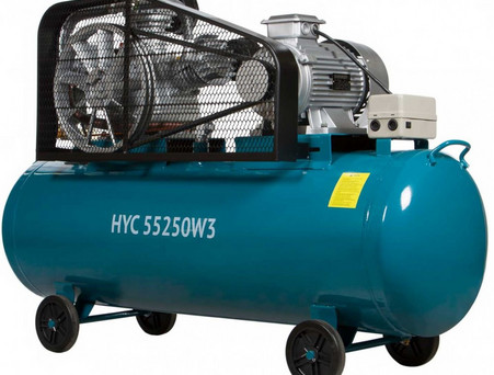 Масляний повітряний компресор HYC 55250W3 (з ремінним приводом) застосовується там, де потрібна хороша продуктивність і великий об'єм ресивера, а саме: на СТО, на невеликих виробничих ділянках для промислового обладнання, на будмайданчиках - для підключення відбійних молотків та пневмотрамбовок пневмошліфмашин різного типу, піскоструминних апаратів.