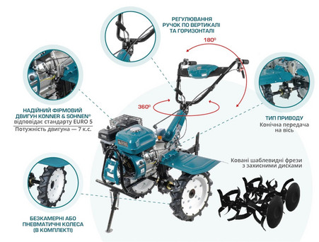 Характеристики - Культиватор бензиновий KS 7HP-1050G
