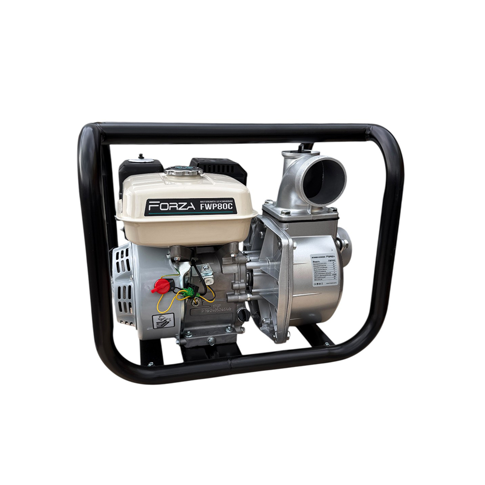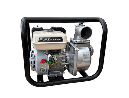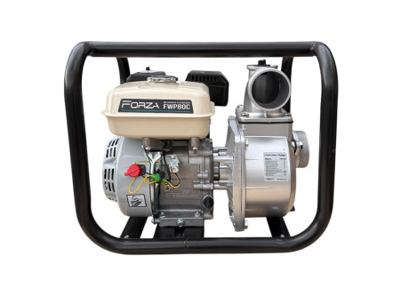Основні деталі мотопомпи Forza FWP80C- це одноциліндровий 4-тактний бензиновий двигун внутрішнього згоряння та водяний насос, які закріплені на одній рамі.